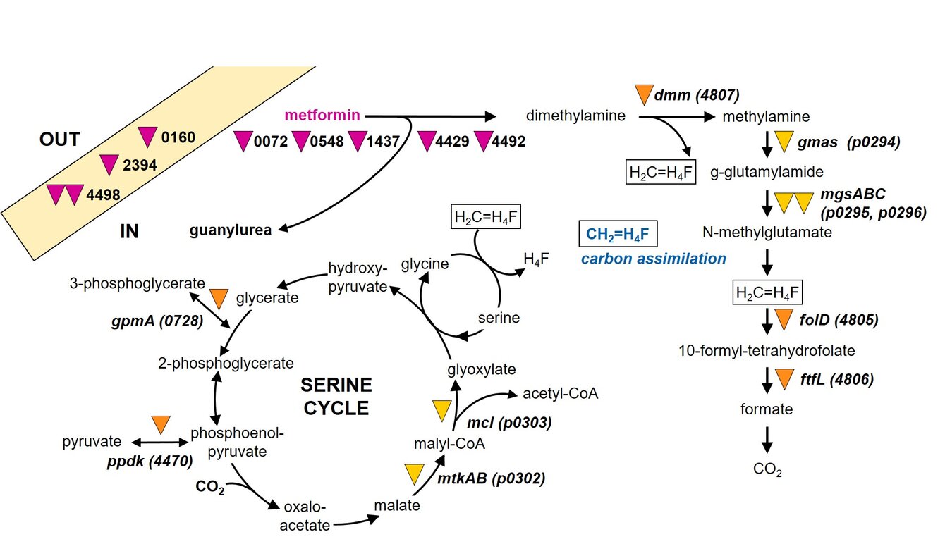 À notre connaissance, aucun micro-organisme capable d'utiliser la metformine comme source de carbone et d'azote pour la croissance n'avait encore été signalé. Nous décrivons ici la souche Aminobacter niigataensis MD1, une bactérie méthylotrophe aérobie capable d'utiliser la metformine comme seule source de carbone, d'azote et d'énergie pour sa croissance et isolée à partir de boues activées de la station d'épuration de la Ville de Strasbourg. Le génome de la souche MD1 a été séquencé, son métabolisme de la metformine a été étudié en détail par transcriptomique et protéomique, et les gènes impliqués dans la croissance avec la metformine ont été identifiés. Les résultats obtenus suggèrent une évolution récente de la capacité de la souche MD1 à dégrader la metformine pour sa croissance.