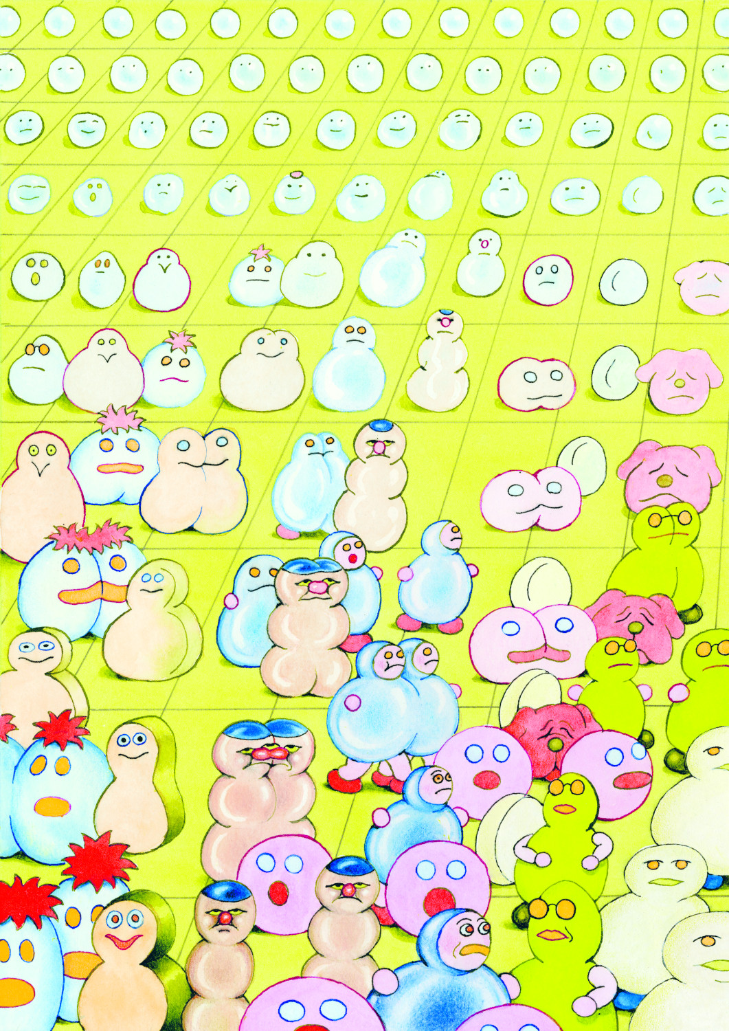 "Samuel Bas a saisi l'essentiel de l’évolution expérimentale : c’est bien rythmé, avec une sensation du déroulement – mais aussi d'une perte de contrôle, quand on commence à précipiter vers une diversité envahissante de styles de vie coexistant dans le même tube. Le jaune verdâtre fait penser au milieu de culture ; c'est une couleur instable, inquiétante, voire dérangeante, comme l’évolution elle-même." (Alexandre Smirnov)